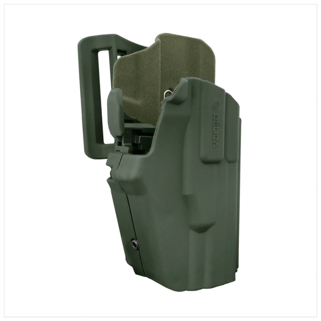 O Coldre Evolution I Passador possui a trava de segurança no guarda mato, realizando o acionamento/liberação no momento da empunhadura para o saque da arma, evitando que a arma seja liberada apenas puxando-a pela coronha. Ele é injetado em polímero, um material resistente, leve e durável, além disso tem seu revestimento interno, o que acaba não danificando o acabamento da sua arma. E para completar, ele acompanha um adaptador de cintura com passador de cinto, que permite ajustar o coldre na posição mais adequada para você.