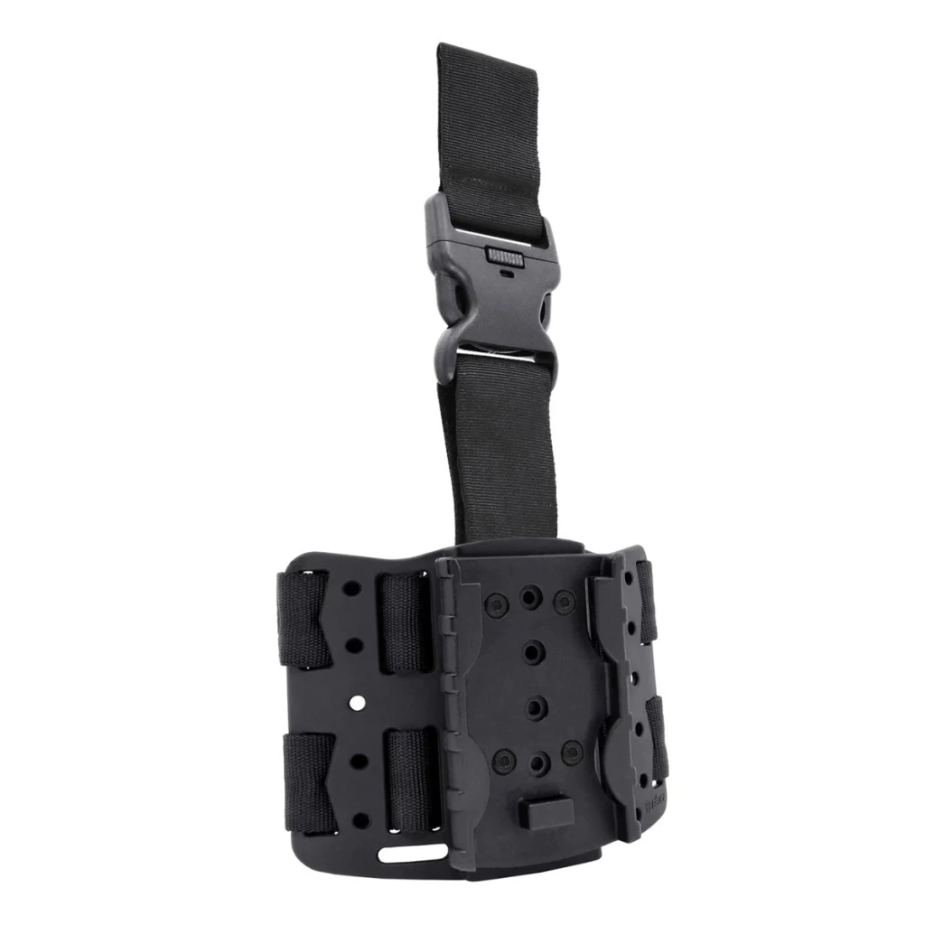 Base pode ser fixada em coletes modulares, mochilas e plataformas, quando acoplada a um adaptador modular (vendido separadamente);